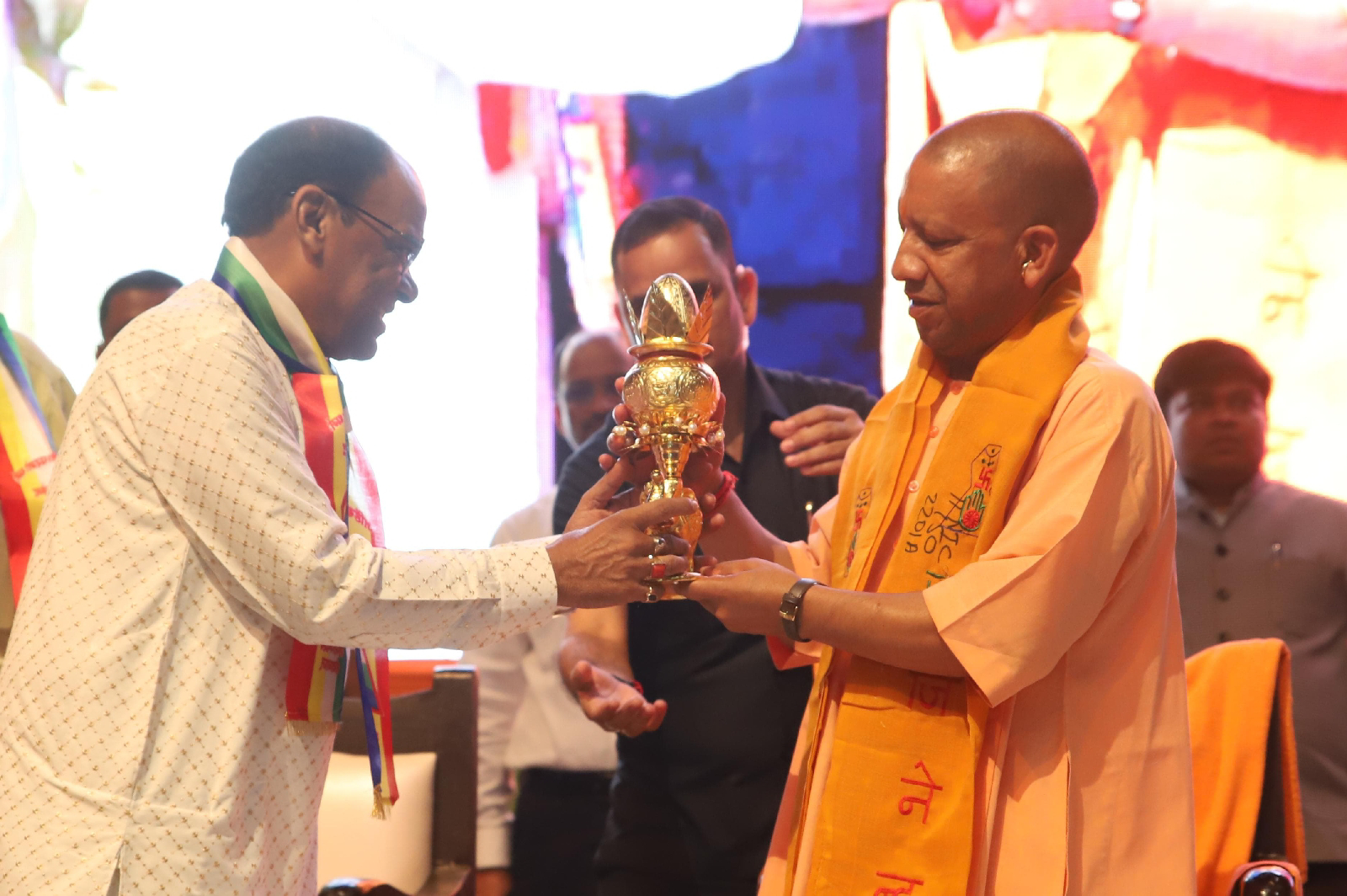 मुख्यमंत्री योगी आदित्यनाथ ने बुधवार को संगीत नाटक अकादमी, गोमती नगर लखनऊ में 'विश्व नमोकार महामंत्र दिवस' के अवसर पर आयोजित भव्य कार्यक्रम को संबोधित करते हुए ये बातें कहीं। शांति, ऊर्जा, सकारात्मकता और विश्व कल्याण के लिए इस कार्यक्रम का आयोजन जैन इंटरनेशनल ट्रेड ऑर्गनाइजेशन (JITO) की तरफ से किया गया। मुख्यमंत्री ने इस मौके पर प्रधानमंत्री नरेंद्र मोदी के वीडियो कॉन्फ्रेंसिंग के जरिए दिए गए प्रेरणादायक संदेश का भी उल्लेख किया। सीएम योगी ने कहा कि प्रधानमंत्री ने व्यवहारिक जीवन में नमोकार महामंत्र को उतारने के लिए 9 संकल्प बताए हैं, जिन्हें हर व्यक्ति को अपनाना चाहिए। इस अवसर पर उन्होंने भगवान महावीर जयंती की शुभकामनाएं भी दीं और जैन धर्म की अहिंसा और परोपकार की शिक्षाओं को जन-जन तक पहुंचाने की अपील की।